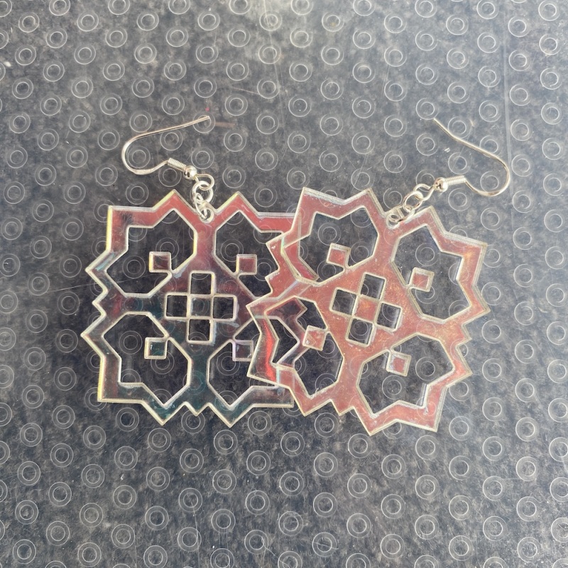 All original designs hand-drawn, translated into digital form and lasercut by the artist herself.